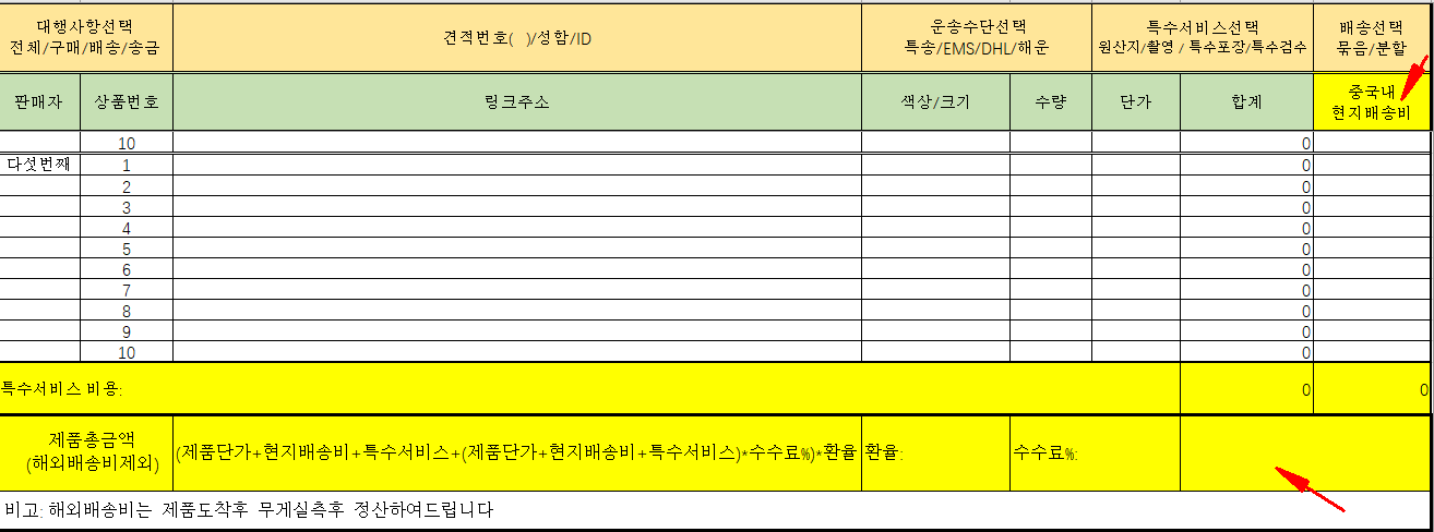 6.노랑칼라 부분은 저희가 작성하는것이기에 비워두시면 됩니다 .